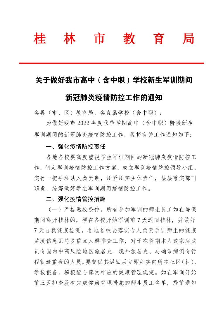 关于新生军训期间新冠肺炎疫情防控工作的通知