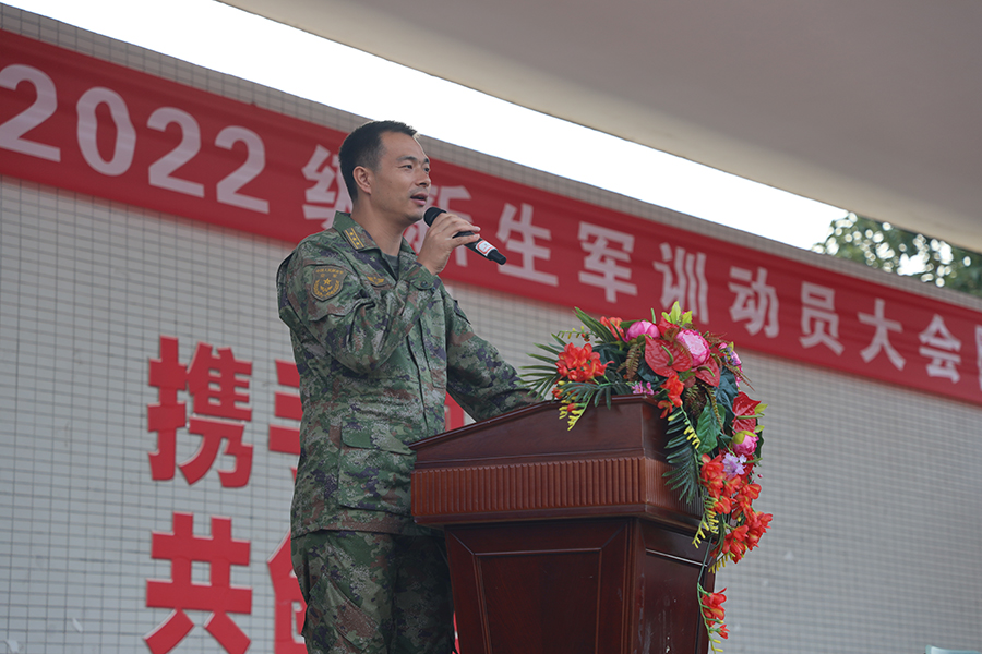 近日,我校2022级新生军训动员大会在学校田径场举行。学校校长彭剑波、党委书记杨剑等校领导以及95389部队政治部主任李明、承训官兵、学校相关部门负责人及2022级全体新生参加大会。 鲜艳的五星红旗迎风飞扬,大会在庄严的国歌声中拉开序幕。会上,彭剑波校长作动员讲话。彭校长首先对新一届桂电中学学子表示热烈的祝贺,同时对95389部队对本次军训工作的支持表示衷心感谢。随后对参训新生提出军训要求:要增强自觉性,提升政治思想,增强集体主义精神;要听指挥,令行禁止,培养坚强意志,吃苦精神;要发扬桂电中学学子精神,敢于担当,勇于创新,拼搏进取,追求卓越。最后祝愿2022级新生军训取得圆满成功。 95389部队政治部主任李明主任发表讲话,他说到少年强则国强,少年雄于地球则国雄于地球,并提出要热爱祖国,听党指挥,培养坚韧不拔的精神。 高一新生代表52班张峰凯同学、初一新生代表200班刘蕴青同学依次发言。他们在发言中谈到自己对军训的理解,军训生活将是新生们磨砺意志品质的大好时机,对今后的学习和生活都有着长远影响。要努力做到以饱满的热情和积极乐观的态度克服一切困难,听指挥、守纪律、不怕苦、不怕累,以军人的标准要求自己,培养坚韧不拔、乐观向上的军人作风。 此次为期7天的军训,结合军事训练和理论学习,组织新生学习队列、军体拳、唱军歌、国防教育、内务整理等一系列丰富的活动。军训内容贴近学生生活,意在提高学生身体素质,增强国防意识和军事技能。以军魂铸学魂,为今后的学习和生活打下坚实基础。
