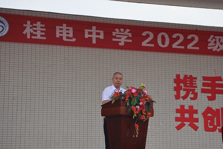 磨炼意志,挑战自我——桂林市桂电中学举行2022级新生军训动员大会时间:[2022-08-15] 来源:政教处 点击数:38