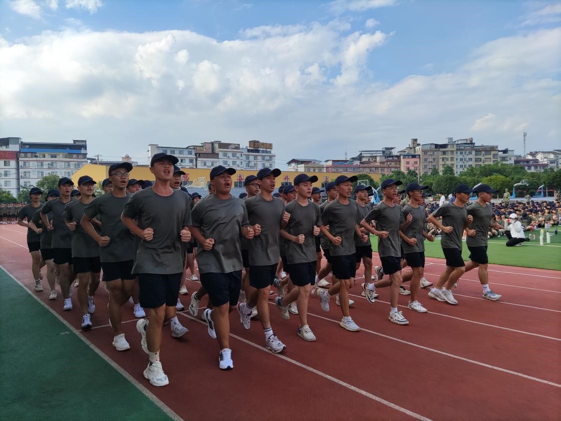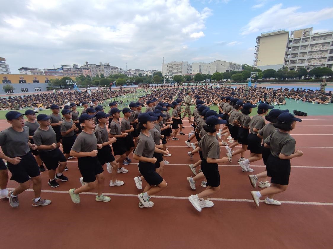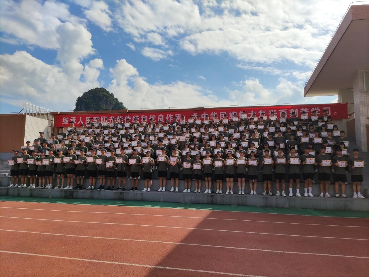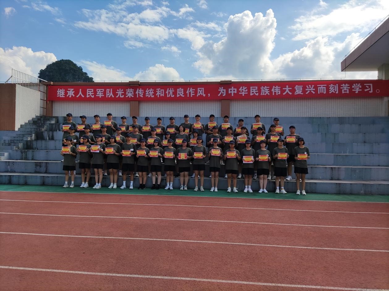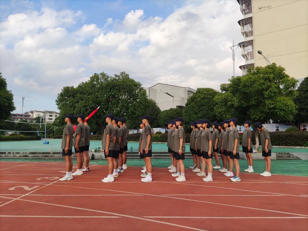 军乐声声,汗水书写青春,烈日炎炎,磨练见证成长。8月20日上午,我校2022级新生军训总结大会在操场隆重举行,整齐划一的会操,气势恢宏的口号。全体学生精神抖擞,用饱满的热情汇报军训成果,用昂扬的气势吹响奋进的号角。 校长彭剑波、党委书记杨剑等校领导出席大会并观看表演。承训教官、学校相关职能部门、各年级负责人及2022级全体新生参加大会。 大会伊始,庄严的国歌响起,全体起立向国旗行注目礼,全场气氛严肃而庄严。 国旗班升国旗 “2022级军训会操表演开始!”一声令下会操正式开始。22个军训方阵迈着整齐划一的步伐,喊着嘹亮的口号从主席台依次走过。整齐的脚步,沉着自信的精神面貌,响彻云霄的口号。他们所表现出的昂扬气势,无一不彰显着军人热情刚毅,追求卓越的血性。 接下来,政教处对在军训中表现突出的个人和集体进行表彰。 优秀内务班级名单: 高52 高53 高54 高55 高59 高60 194班 195班 196班 197班 200班 201班 会操获奖班级: 初中 第一名 196班 第二名 195班 194班 第三名 200班 201班 198班 高中 第一名 高52班 高58班 第二名 高57班 高59班 第三名 高53班 高55班 获奖班级合影留念 最后,文向东副校长对此次军训做了总结发言。文副校长说:“同学们在军训中充分展现了自己搏击困难的信心与勇气,也展现了桂电学子良好的精神风貌。军训一阵子,受益一辈子,在今后的学习生活中,希望同学们以此次军训为起点,记住自己的责任与初心,向优秀学长学姐学习,发扬桂电学子精神和五自校训,保持军训中学习到的吃苦耐劳、不怕困难、团结向上的品质,继续创造桂电中学新的辉煌!” 文向东副校长发言 为期7天的军训在响亮的口号声中圆满划下句点。满载着汗水与拼搏的军训记忆将成为新生们学海生涯里精彩又难忘的一页,军训期间学习到的不怕困难奋勇向前的精神,将指引我们勇敢迎接挑战,不断突破自我,走向更好的未来。