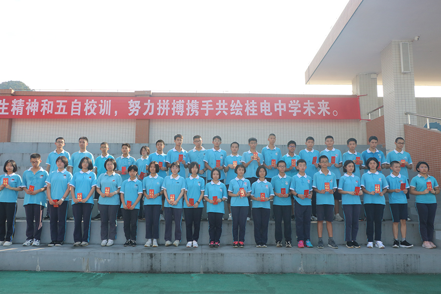 | 我校隆重举行2022年秋季学期开学典礼时间:[2022-08-30]    来源:政教处    点击数:23 放眼秋野,硕果累枝,丰收的景象激励我们拼搏奋进。环顾校园,书香四溢,新输入的血液促使我们奋发向上!8月29日上午8点,我校在学校田径场隆重举行2022年秋季学期开学典礼。   新学期的校园比以往更加的喜气洋洋,更加的振奋人心,在这个收获的季节里,我们不但迎来了1000多名新同学,还有28位新老师加入我们的大家庭。   新加盟教师 播下希望的种子,伴着秋风的到来,我们将收获丰硕的果实!我们桂电中学之所以能够蓬勃发展,是因为我们有乐于奉献、积极进取、勤奋博学的领导和老师们!新的学期,在学校领导的正确领导下,全体教职员工将朝着更高的目标驰向辉煌。   彭校长讲话 同学们的成长离不开老师们的陪伴,新学期,老师对同学们寄予厚望,同学们也用热烈的掌声表达对全体老师的敬意和谢意。   教师代表杨之老师发言 过去的这个假期,同学们用不同的方式充实着自己的生活。在第31届全国中学生生物学奥林匹克竞赛中,我校郭松涛同学获得生物学奥林匹克竞赛银牌,并获得清北强基破格入围资格,创造了我校生物竞赛的历史!   学生代表郭松涛同学发言 我们的学生勤奋博学、进取争先,在学习、生活中涌出了一大批佼佼者,教务处对上个学期获得奖学金的同学进行表彰。   奖学金一等奖获得者   奖学金二等奖获得者   奖学金三等奖获得者 “谁持彩练当空舞,且看今朝桂电中学人”。新学年,让我们手拉手,心连心,团结一致,构建和谐校园,谱写美好灿烂的明天,为党的二十大献礼!