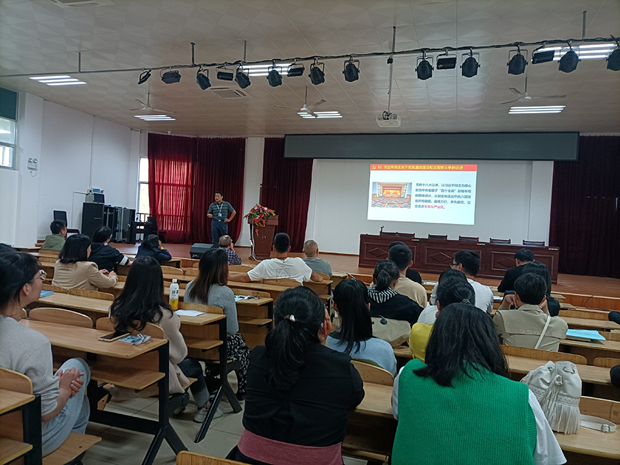 11月1日下午,桂电中学党委书记杨剑为中学全体教工党员上党风廉政建设专题党课。