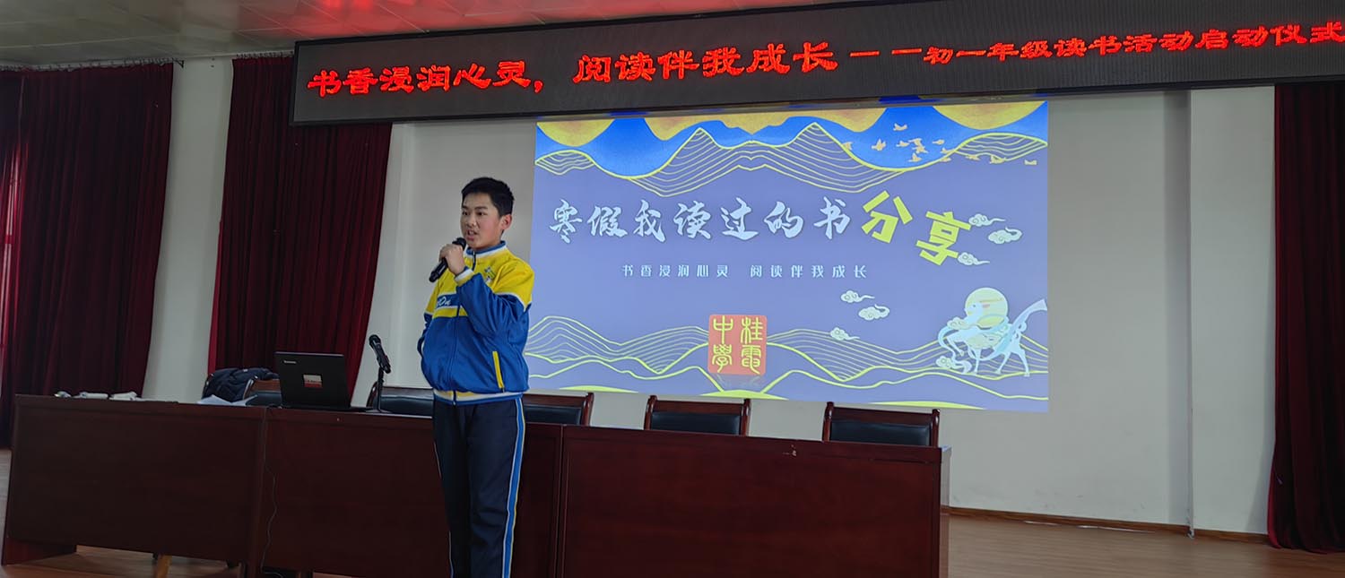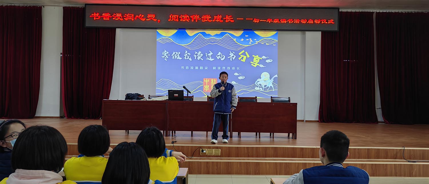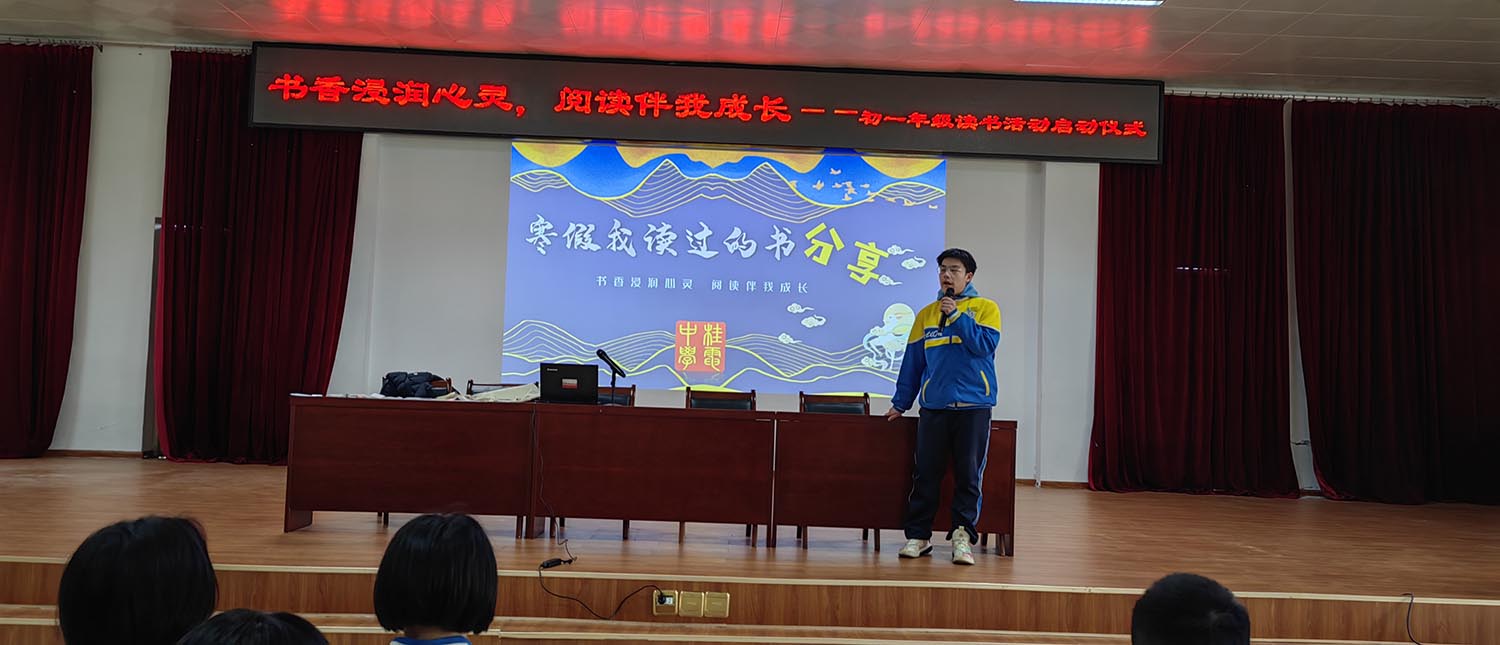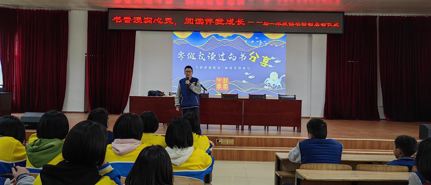 书香浸润心灵 阅读伴我成长——桂电中学初一年级“爱上阅读”主题活动启动仪式时间:[2023-02-24] 来源:初一年级组 点击数:75