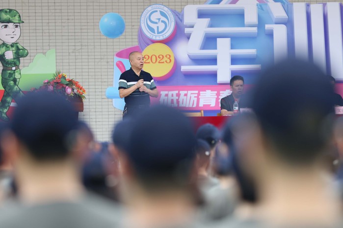 会上,彭剑波校长作动员讲话。彭校长首先对新一届桂电中学高一学子表示热烈的祝贺,同时对95389部队对本次军训工作的支持表示衷心感谢,接着简要介绍了我校今年高考振奋人心的佳绩,希望高一全体同学以优秀的学长为榜样,创造属于自己的新辉煌。 随后对参训的高一新生提出要求:一是要充分认识军训的意义,提升政治思想觉悟,自觉厚植集体主义、爱国主义精神,培养国防意识、家国情怀,增强组织、纪律观念。二是要服从命令、听从指挥、令行禁止,吃苦耐劳、磨砺意志、永不言败。三是要把学习军人的纪律、作风与遵守学校的规章制度结合起来,锻造成为一名优秀的中学生。发扬桂电中学的学生精神:敢于担当,勇于创新,拼搏进取,追求卓越。