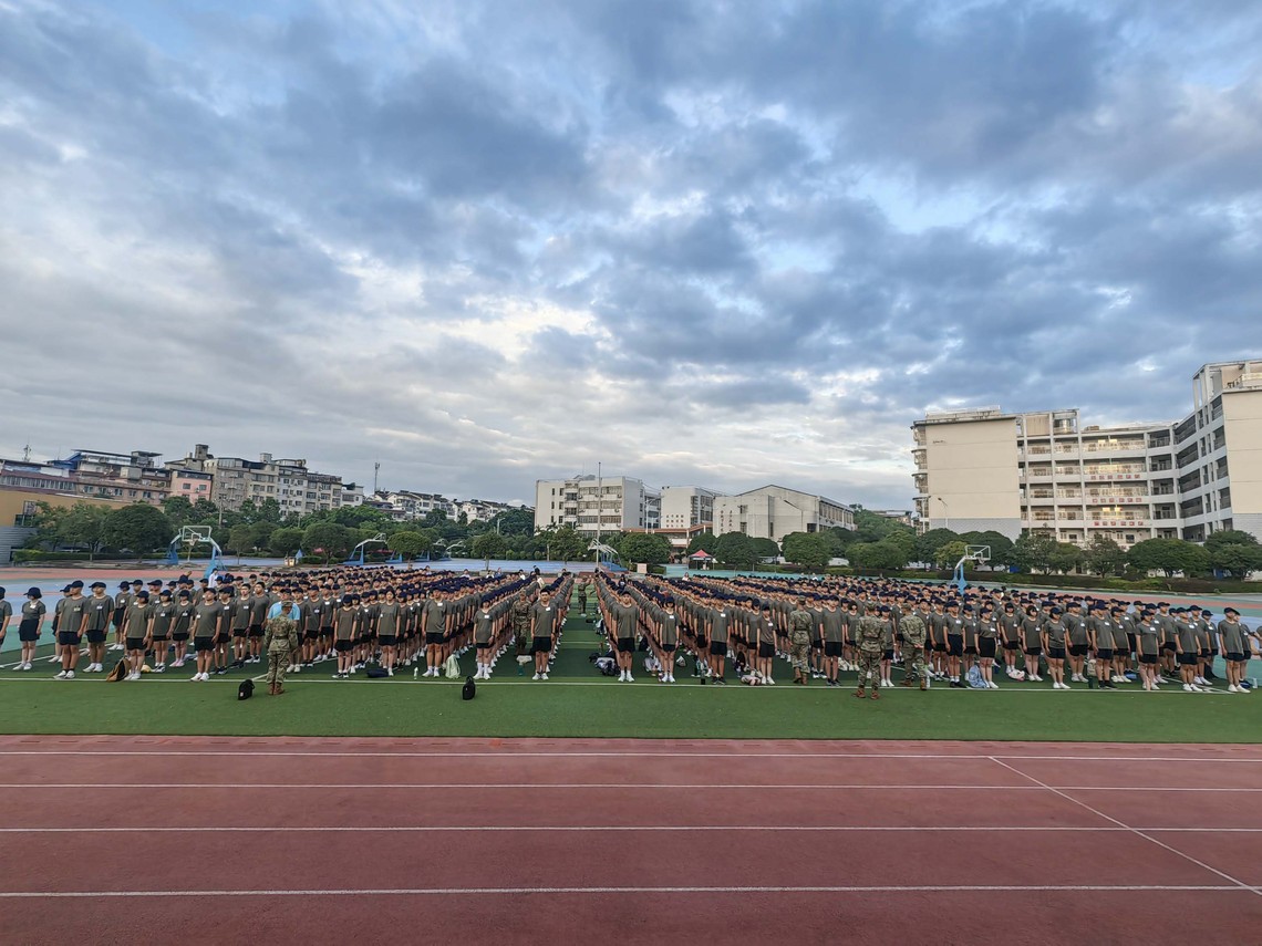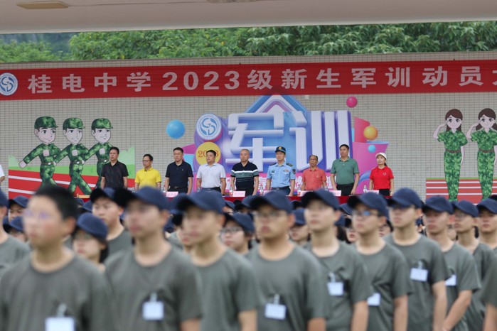 8月7日上午8时许,桂电中学2023级新生军训动员大会在学校田径场举行。彭剑波校长、杨剑书记等学校领导、95389部队政治工作部吴剑副主任、承训官兵、学校相关部门负责人及2023级全体新生参加大会。
