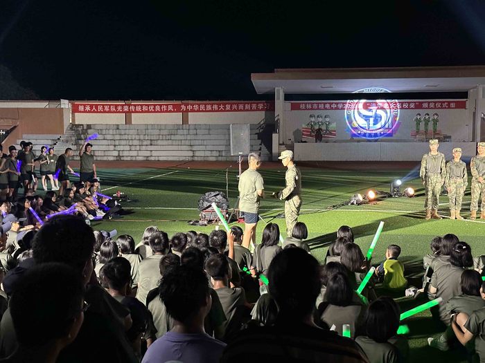 稍息,立正,向右看齐,向前看,齐步走……连日来,在桂林市桂电中学的运动场上,2023级高一新生迎来了他们高中生涯的第一课——军训。在教官的严格要求和指导下,各班级有条不紊地开展训练。同学们一遍遍地练习,汗水浸透了衣服,力求每一个动作更加标准、规范。铿锵有力的步伐,自信挺拔的身姿,见证着桂电中学学子的成长与蜕变。 ![]() ![]() ![]() ![]() ![]() ![]() ![]() ![]() ![]() ![]() ![]() ![]() ![]() ![]() ![]() ![]() ![]() ![]() ![]() ![]() ![]() ![]() ![]() ![]() ![]() ![]() ![]() 文艺汇演 自信放光芒 军训不仅有辛苦的队列练习,还有精彩的文艺汇演。8月11日晚上,桂电中学田径场上灯光闪耀、歌舞飞扬,高一新生军训文艺汇演火热进行,老师、教官以及同学们齐聚一堂,共同见证高一萌新最美好的青春模样。 同学们自编自导自演,节目形式丰富多彩,独唱、合唱、串烧、舞蹈、脱口秀、诗朗诵、乐器演奏等轮番上演。青春的活力在灯光下熠熠生辉,演出期间掌声不断,欢呼声与呐喊声不绝于耳。尤其是压轴出场的教官,一支高质量的街舞让同学们惊叫连连,看到教官多才多艺的一面。最后,演出在教官和同学们精彩互动中结束。 ![]() ![]() ![]() ![]() ![]() ![]() ![]() ![]() ![]() ![]() ![]() ![]() 学法指导 自主向未来 工欲善其事必先利其器。为了让同学们了解高中的学习生活,养成自主学习的习惯,更加高效地学习,学校邀请了经验丰富的高中老师在军训期间为同学们做各学科学法指导讲座,还特别邀请了今年高三的两位优秀毕业生回校传授经验。每天下午的讲座,各学科精心准备,既有严谨科学的理论指导,又有切实可行的操作建议,讲座中不时爆发出热烈的掌声,同学们也都被精彩的内容深深吸引。 在讲座过程中,同学们或是认真思考,或是仔细做笔记。在互动问答中,同学们也提出了关心关注的问题,老师们都耐心做了答复。在老师深入浅出的剖析中,为同学们清晰勾勒出未来三年的学习方向。相信在学校科学地统筹安排下,2023级高一小萌新们一定可以迅速适应高中学习,创造桂电中学的新辉煌! ![]() ![]() ![]() ![]() ![]() ![]() ![]() ![]() ![]() ![]() ![]() ![]() ![]() 内务整理 自律显精神 出门看队列,进门看内务。一屋不扫,何以扫天下。内务整理,是军训的必修课之一,作为寄宿制学校,整理好内务也是同学们每天必不可少的环节。内务整理训练,有助于培养同学们良好的生活习惯以及自主、自律的独立生活能力,有助于增强同学们的集体荣誉感与班级凝聚力。连日来,同学们一丝不苟的按照要求叠豆腐块、摆放物品,切实感受到了军事化管理的氛围。同时,也培养同学们的自律精神,让同学们体会到劳动的快乐和成功的喜悦。相信同学们定会将军训中优秀的习惯保持下去,助力接下来三年的高中学习生活! 初审:邓富强 二审:周荔