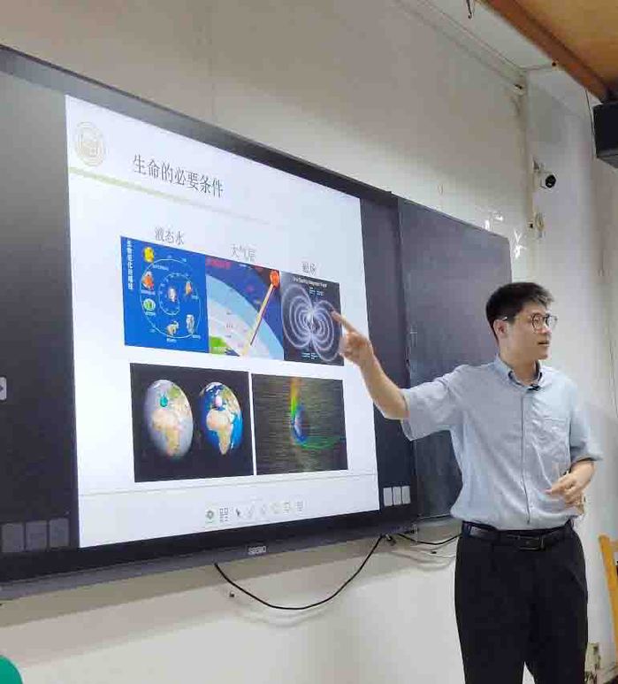2023年11月22日下午,同济大学测绘与地理信息学院助理教授杨明在六教二楼阶梯教室为桂电学子开展了主题为“探索行星世界”科普讲座。 相较于浩渺宇宙,太阳系只是沧海一粟。银河系孕育了千亿颗恒星,银河系外还有数以亿计的河外星系。天文学家们不禁思考,其他恒星附近也会有行星吗?如何探测太阳系外行星呢?是否有地外生命呢?带着这些问题,同学们跟随杨老师开启了行星世界的探索之旅。 同济大学助理教授杨明主要致力于行星科学和小行星等领域的研究。讲座中,杨老师援引最新的数据和国内外在该领域的研究成果,深入浅出地为同学们介绍了太阳系的演化历史、小行星的起源和生命的来源,激发了同学们的兴趣和热情。在随后的提问互动环节,在场的同学积极参与,杨老师从专业的角度为同学们答疑解惑。最后,杨老师表达了对桂电学子的期望:仰望星空,宇宙浩瀚,从行星出发,无垠的宇宙会有更多的奥秘等着大家去探索。