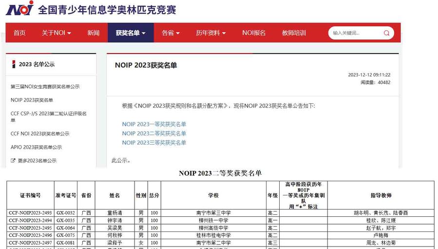 热烈祝贺我校何秋桦同学在2023年NOIP全国青少年信息学奥林匹克联赛中荣获二等奖。