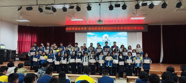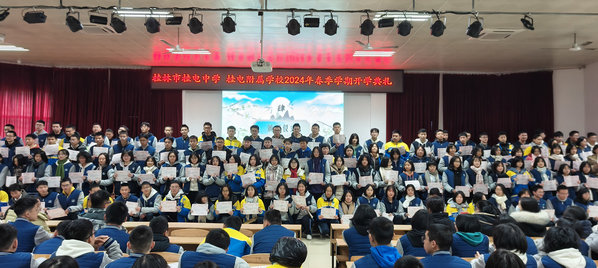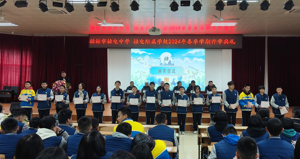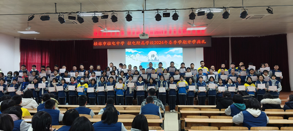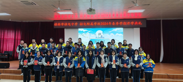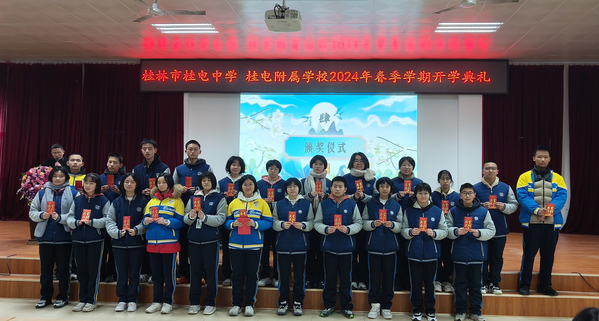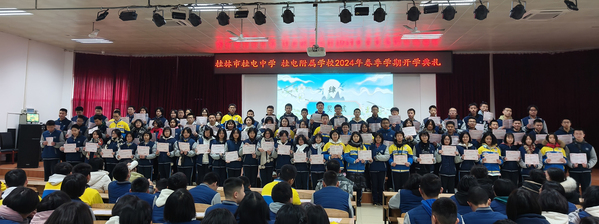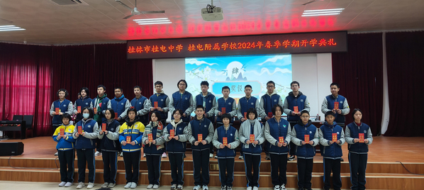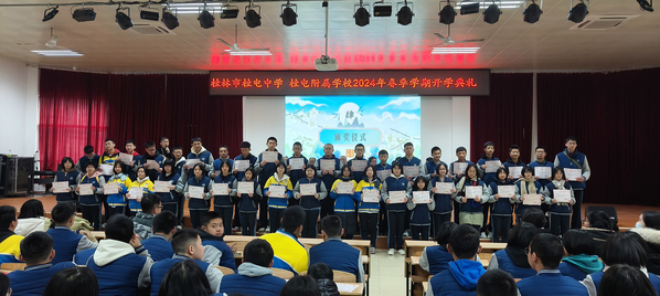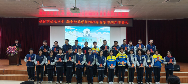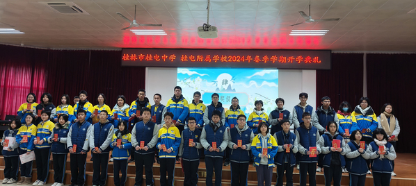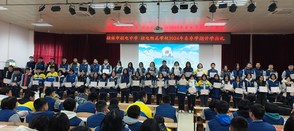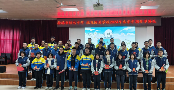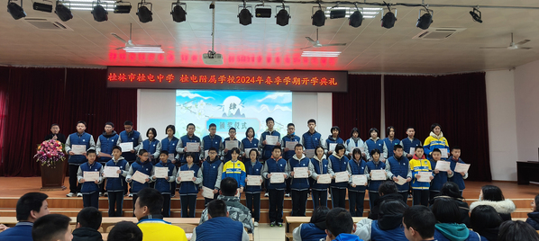 桂林市桂电中学、桂电附属学校举行2024年春季学期开学典礼时间:[2024-02-26] 来源:桂电中学 点击数:10