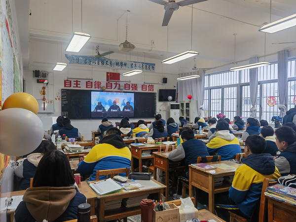 彭校长致辞 “新的一年,新的开始,新的奋斗,新的收获,让我们挂起自信的风帆,扬帆远航,金色的阳光是我们的笑颜,悦耳的水声是我们的欢呼,我们为别人喝彩,为自己骄傲。”高三年级42班黄梓恒同学作为学生代表发言,他用坚定的话语,表达勇往直前的决心。同时,他也呼吁同学们以更加饱满的热情投入到学习中去,追寻梦想,成就无悔青春。