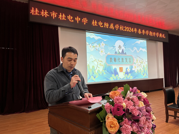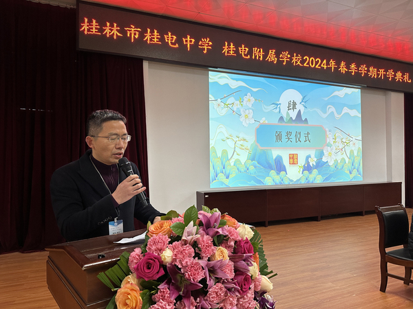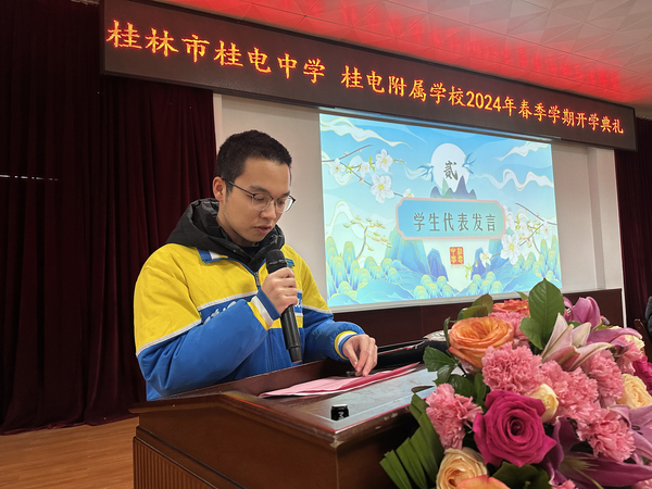阳和启蛰,龙腾虎跃,金龙昂首,万象更新。2月26日上午,桂林市桂电中学、桂电附属学校2024年春季学期开学典礼在食堂报告厅隆重举行,全体校级领导及各年级师生代表出席典礼。