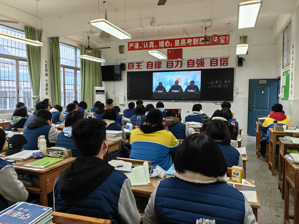 学生代表:高42班黄梓恒同学发言 高三年级生物老师韦朝满作为教师代表发言,他鼓励同学们像电影《热辣滚烫》女主角一样,不被定义,重新为自己打上标签,开启积极人生,努力拼搏以实现个人目标,他希望同学们在新的一年里能够破旧立新,奋发向上,迎接更加灿烂的未来。
