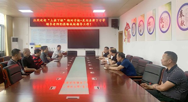 4月25日下午,“上挂下联”结对学校—灵川县潭下中学校长蒋小龙一行到我校进行考察交流,桂电中学在家领导班子陪同考察,并在行政楼会议室召开座谈交流会。 会上,李超进副校长对蒋小龙校长一行的到访表示欢迎,并就我校的办学历程、教育教学成绩、目前高三年级备考情况等进行了详细地介绍。 蒋小龙校长详细介绍了潭下中学的基本情况、生源状况、教育教学及师资等方面情况,并对我校近几年高考取得的成绩及教育教学管理工作表示高度赞赏。 彭剑波校长表示,桂电中学高度重视“上挂下联”结对交流活动,将切实加强两校教师之间的教研互动和教学业务的交流,共同促进学校管理水平提升,优化教学行为和学校管理,不断提高教育教学质量。 座谈会上,双方就日常的教育教学管理和教师队伍建设等方面进行了深入交流。