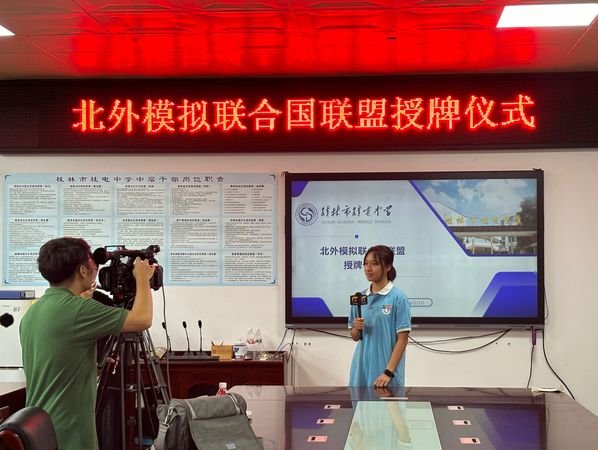 授牌仪式后,赵雪卿、李志斌以及参加过模联比赛的学生代表彭心悦、梁梓钰、袁梓涵分别接受了广西电视台采访。 供稿:邓玉婷 审稿:教务处