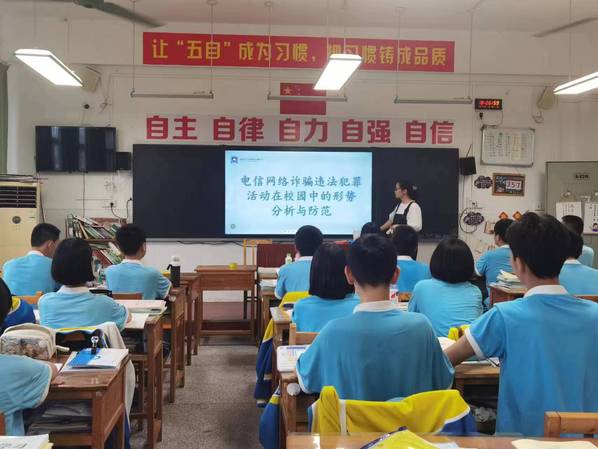 此次反诈防范宣传进校园活动也是我校开展系列未成年反诈防范宣传活动之一,此前,组织全校学生观看了反诈宣传视频、开展了预防电信诈骗主题班会等活动,通过开展系列活动,有效提升了学生们对新型诈骗的防范意识和警惕性,筑牢校园防诈“安全墙”。 (供稿人:邓玉婷,审稿:党政办)