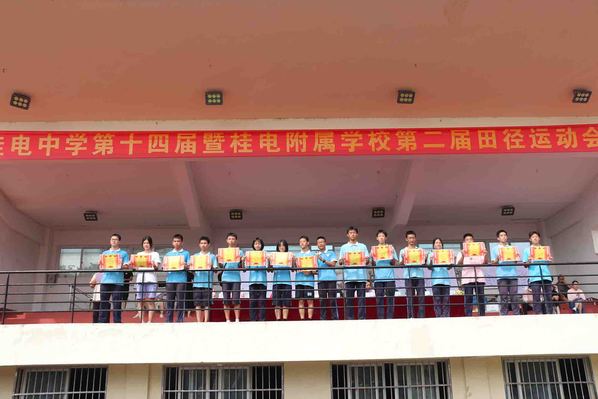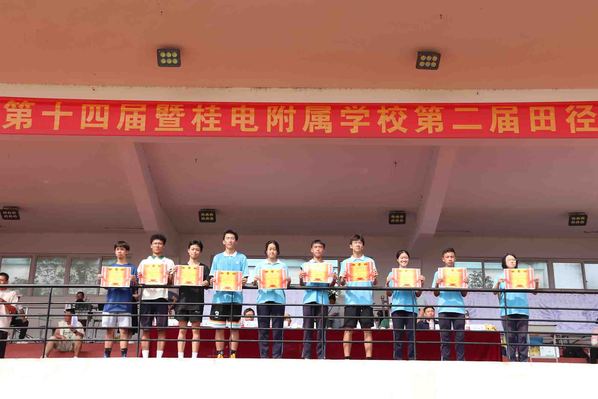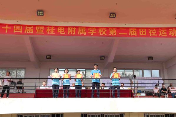 金秋九月,秋风和煦,硕果累累。欢呼与汗水交织,竞技与友谊共鸣。经过两天半的激烈角逐,桂林市桂电中学第十四届暨桂电附属学校第二届田径运动会正式落下帷幕,闭幕式于9月30日在田径场举行。