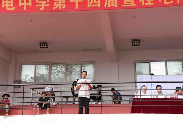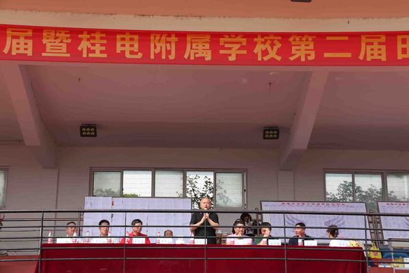校长彭剑波宣布桂林市桂电中学第十四届暨桂电附属学校第二届田径运动会圆满闭幕。