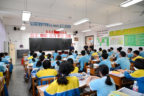 张文涛一行走进高三、初三年级教室,实地察看备考学生的学习状态和教学环境,并与师生们亲切交流,询问复习进度和心理状态。张文涛表示,看到同学们精神饱满、斗志昂扬,老师们倾尽全力、精益求精,感到非常欣慰。他结合自身经历为同学们送上备考建议,勉励同学们树立信心,充分相信自身实力和潜力,明晰备考目标,科学规划进度,学会高效学习、合理休息、积极生活,做到身心健康、张弛有度、劳逸结合,以最佳状态迎考。