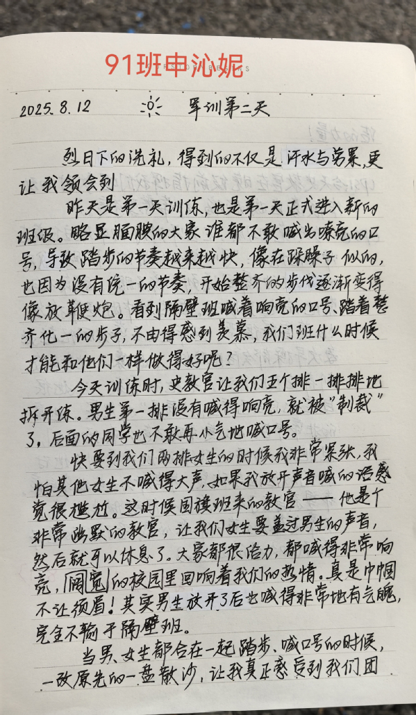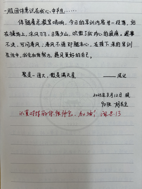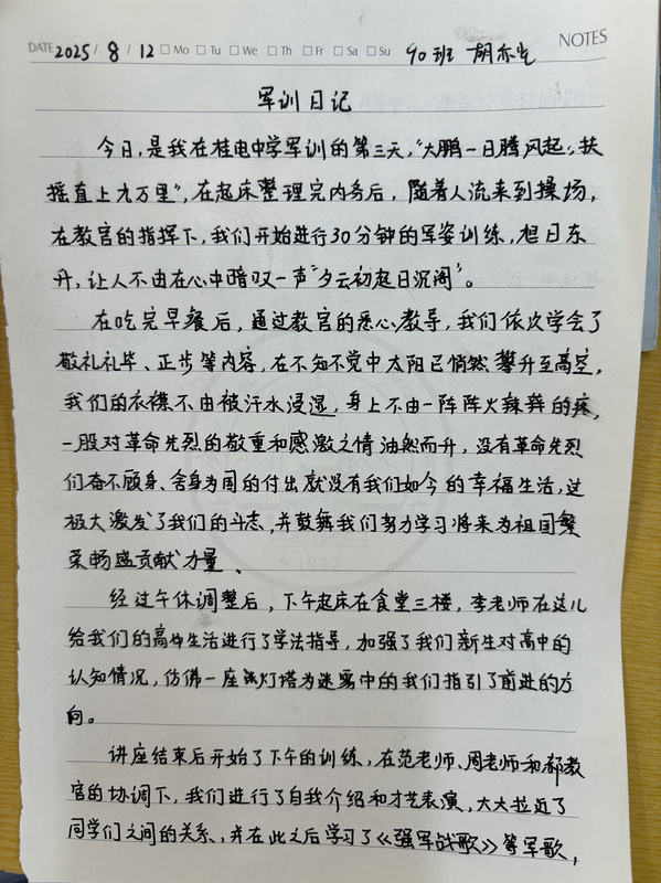 笔下军训情 铁魂砺中成——2025级新生军训纪实二时间:[2025-08-13] 来源:桂电中学 点击数:10
