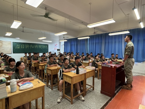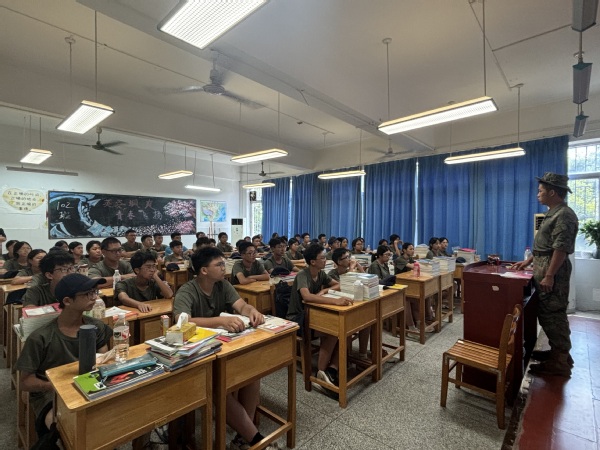 在军训的间隙,同学们从训练场转战到教室,一场别开生面的国防教育课便走进各班教室。教官化身“国防讲师”,用生动的案例、激昂的讲述,为青春注入家国情怀,让同学们心中悄然生长出对“国防”二字的深刻理解。