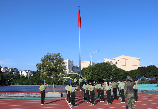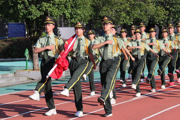 全体2025级高一新生以挺拔的军姿立于操场,国旗班的同学们踢着整齐的正步出场。“升国旗,奏唱国歌!”随着口令响起,全体昂首肃立,大会在雄壮的《义勇军进行曲》中拉开帷幕。