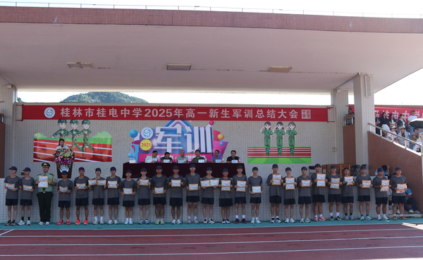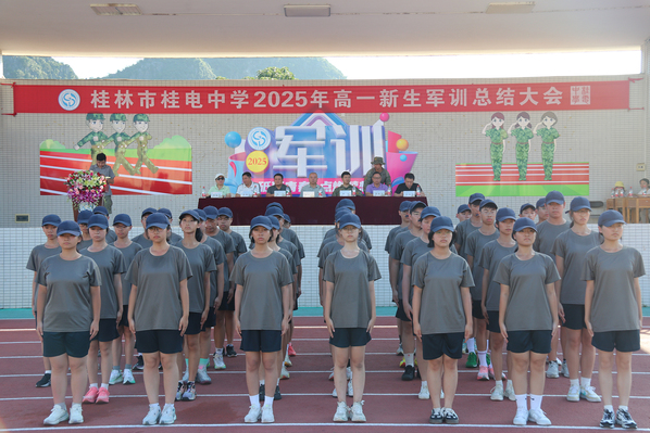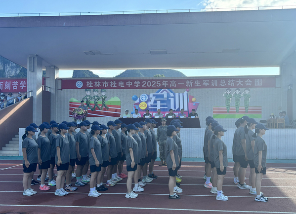 经过了烈日的考验,汗水的洗礼,为期一周的军训圆满落幕。8月17日,桂电中学隆重举行2025级高一新生军训总结大会,学校领导、军训教官、全体2025级军训师生及家长参加。