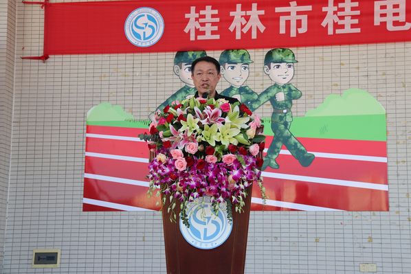 桂电中学副校长文向东作总结讲话,他肯定了同学们辛苦训练的成果,感谢本次军训的承训教官及教师,希望高一新生们将军训中学到的优良品质和宝贵经验融入到今后的学习和生活中,不断挑战自我、超越自我,开启新的征程!铸就桂电中学学子的青春荣光!