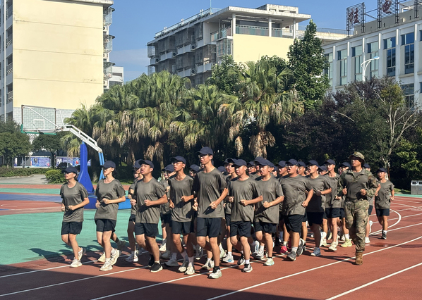 14支方阵队伍排列整齐,以良好的精神面貌迎接检阅,充分展现军训的优秀成果。他们昂首阔步齐步走,步伐如钟摆般精准划一;正步踢,脚掌叩地似惊雷滚动;跑步前进,少年身姿如蓄势奔马。“一、二、三、四”的呐喊穿透热浪,震彻云霄,尽显2025级高一新生昂扬向上的精神风貌。