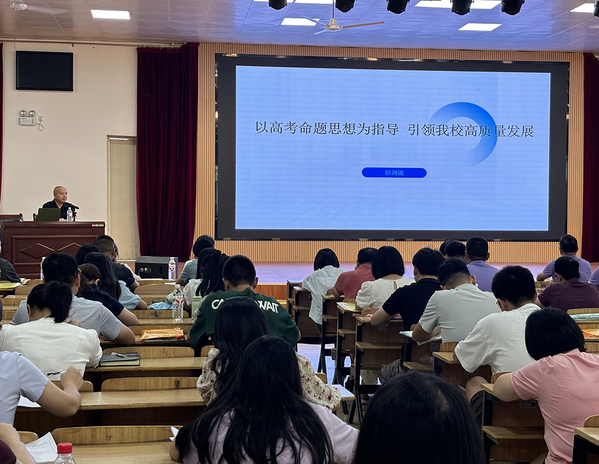 21日上午,全体教师培训会议在食堂报告厅举行,桂电中学、桂电附属学校校长彭剑波以《以高考命题思想为指导 引领我校高质量发展》为题,阐述了如何根据新高考“立德树人、服务选拔、引导教学”的宗旨,开展学校教育教学常规工作。彭校长从理论到实践,全方位为教师们解读了高效课堂的核心要素与实施路径,提供了课堂教学改革的新思路和新方法。