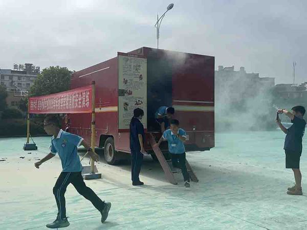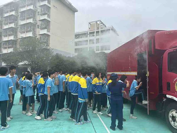 七星消防救援大队宣传员蔡教官向师生详细讲解了消防安全知识、火灾案例、逃生自救技巧等方面的知识。部分同学还走进了一间特殊的“安全教室”——烟雾消防车,进行逃生演练。在充满烟雾的逃生模拟室中,同学们亲身体验了火灾现场的惊心动魄,在漆黑与混乱中,同学们学会了保持冷静撤离。