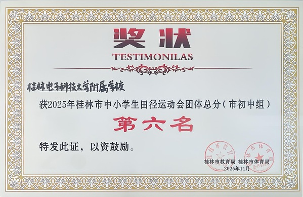 喜报:热烈祝贺桂电中学、桂电附属学校学子在2025年桂林市中小学生田径运动会中勇创佳绩时间:[2025-11-19] 来源:桂电中学 点击数:44