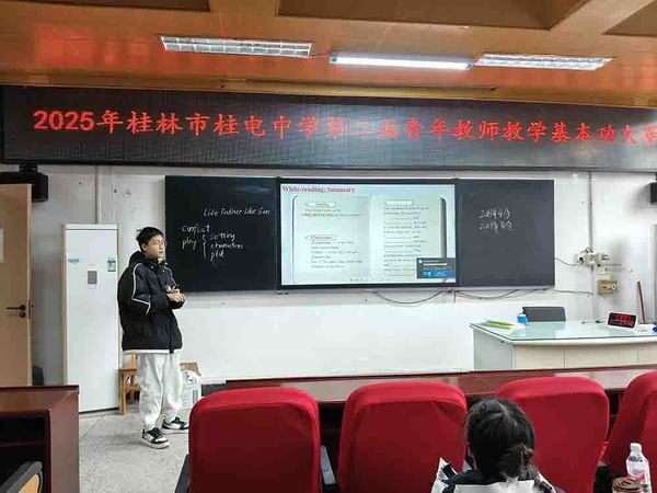 为加大培养学校青年骨干教师的力度,引导并带动青年教师提升专业素养和教学能力,进一步推动桂电中学的高质量发展。学校科研处统筹安排于2025年11月19日成功举行了桂电中学第二届青年教师基本功大赛。 本次大赛分为初赛和决赛两阶段。第一阶段的初赛从10月初至11月14日,各教研组在组内举行选拔赛后向学校提交参加决赛名单。 第二阶段的决赛分为两个环节:首先是参赛教师根据随机选定的课题,在学校机房里进行60分钟的封闭式备课(教学设计、课件制作);其次,参赛教师面向评委进行15分钟的模拟上课。