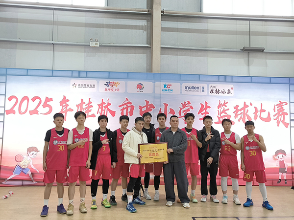 我校篮球队队员们在赛场上用实际行动诠释了顽强拼搏、永不言弃的体育精神。本次佳绩的取得,不仅彰显了桂电学子昂扬向上的精神风貌,也是对队员们坚韧意志与团队协作精神的最高褒奖,更是学校长期坚持五育并举、全面发展育人理念的生动诠释和有力证明。今后,桂电中学、桂电附属学校将继续深化体教融合,为桂林青少年体育事业贡献力量,助力学子在竞技与人生的赛场上勇攀高峰。