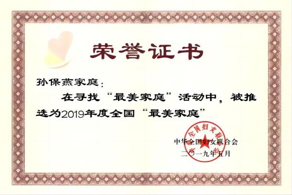 孙保燕家庭获全国“最美家庭”称号