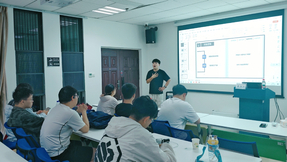朱江江老师结合自身声乐学习及歌唱经验,从如何唱歌、如何发声、如何呼吸以及突破高音四个板块进行了逻辑梳理和系统性的讲解。通过歌曲鉴赏和现场演示,朱老师带领大家从易到难练习发声技巧,重点阐述了练习气息时“张大口”和“伸舌头”等细节处理,强调了“放松喉部”、“顺畅气流”的重要性。活动现场特别设置了互动指导环节,针对学生在演唱的过程以及整体效果提出了针对性的建议,有效地利用音乐缓解了研究生在科研与生活中的焦虑情绪。