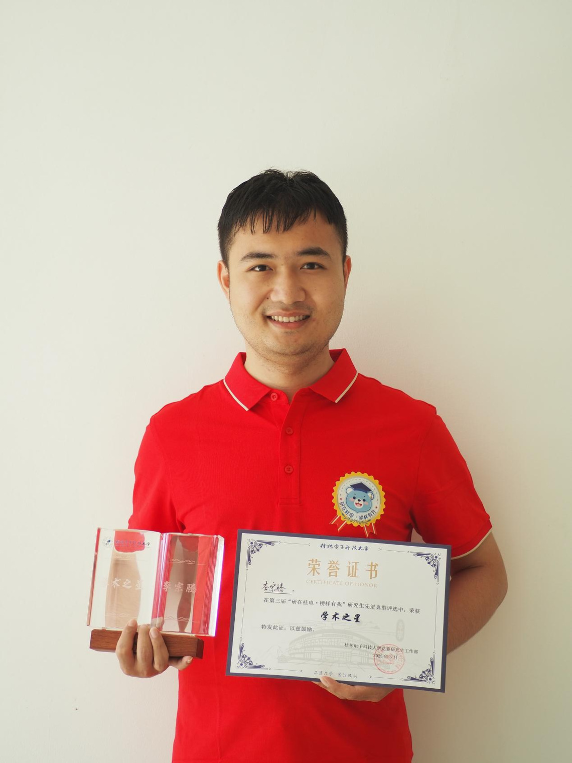 李宗腾,自动化与电子工程学院仪器科学与技术专业2022级硕士研究生。曾两次获得桂林电子科技大学研究生学业奖学金一等奖,获国家奖学金一次。发表论文4篇,发明专利6项,均已公开。在研一时曾任研会宣传部成员并获得第七届研究生会优秀研究生会助理荣誉称号。