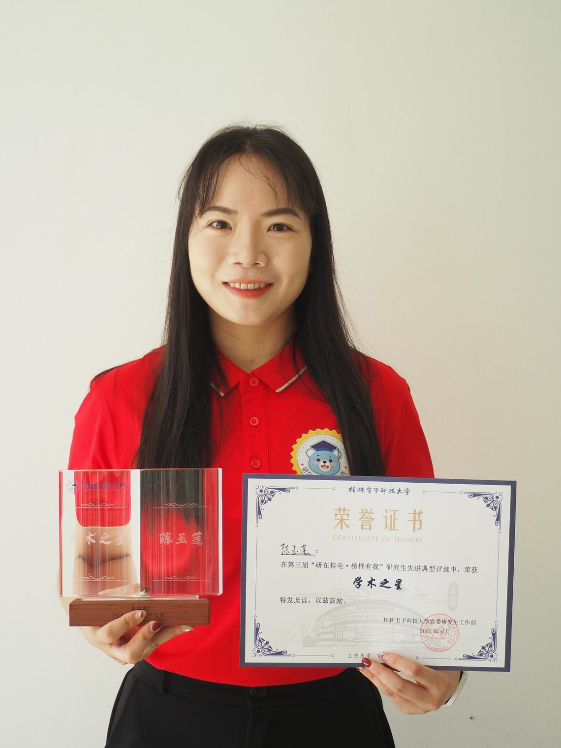 陈玉莲,光电工程学院光学工程专业2022级博士研究生。在校期间获得博士研究生国家奖学金、三次一等学业奖学金、“领益奖学金”、“汉桐厚学”研究生创新论坛一等奖、校“优秀研究生”、校“三好学生”、校“自强之星”、校“十佳团支书”等荣誉。目前累计参与发表22篇学术论文,其中已发表一作论文4篇(中科院一区论文1篇,二区论文3篇),在投一作论文一篇,参与申请专利7项,以第一负责人获得校级创新项目2项,多次参加国际/全国学术会议并做口头汇报。曾任党支部支委,始终牢记党员身份,践行使命,服务群众,获得学习强国“优学之星”称号。一直秉持积极向上的思想对待学习工作和生活,做到不怕吃苦、不怕流汗、不畏艰险,努力学习科研知识,提升自己的综合素质。