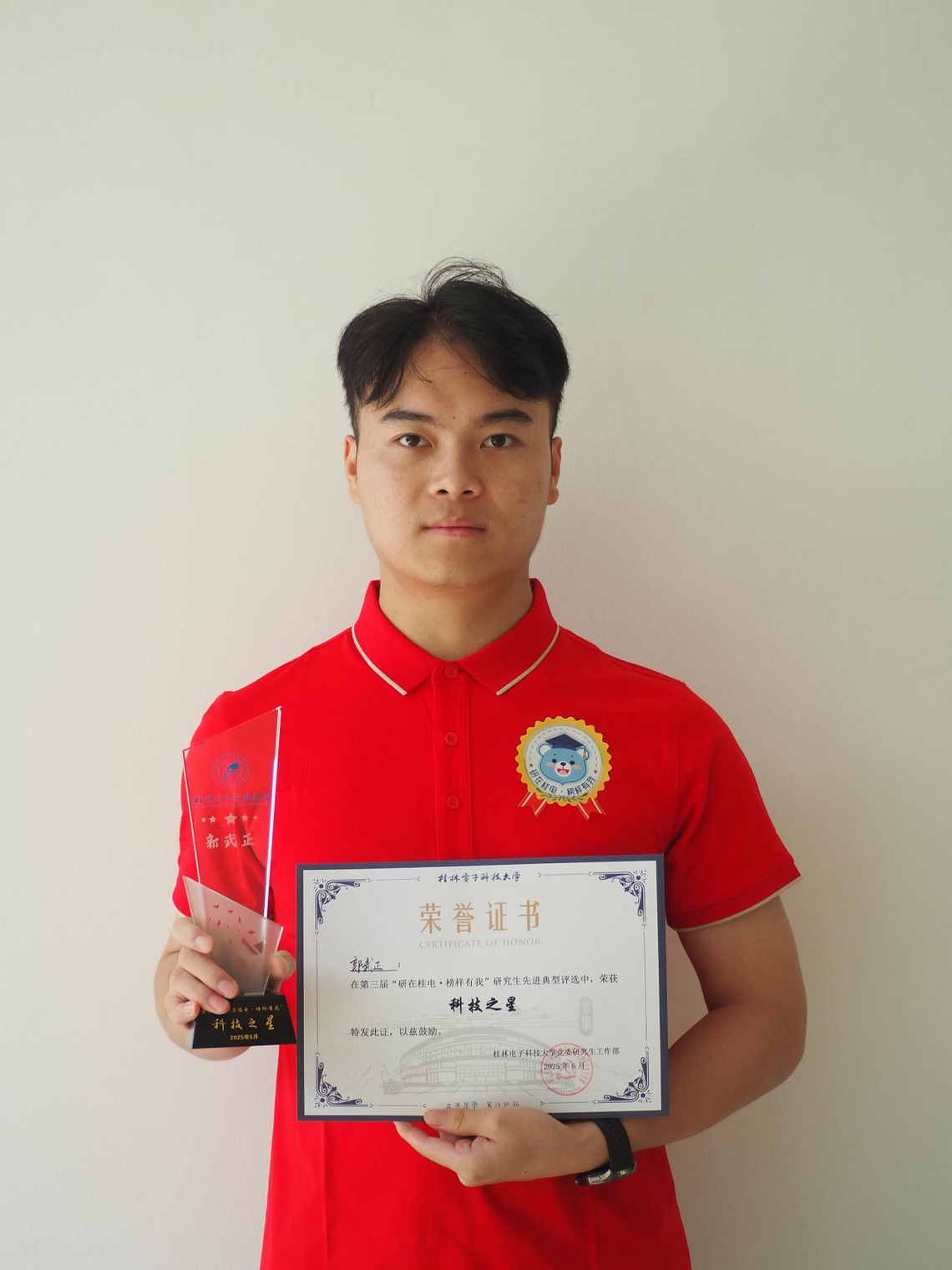 郭武正,信息与通信学院新一代电子信息技术专业2023级硕士研究生。2024学年综合素质测评专业第三(前2%),曾一次获得桂林电子科技大学研究生学业奖学金一等奖,荣获国家级赛事三等奖1项。代表学校参加学术会议两次,发表1篇SCI论文,2项发明专利,1篇EI会议论文,主持并在研1项省级研究生创新项目。参与广西重点研发项目2项。勤奋刻苦,甘于奉献,长期担任学生干部。现任桂林电子科技大学信息与通信学院研究生会科研部部长,曾获2024年桂林电子科技大学“优秀研究生”、2025年“优秀共青团员”称号,任职期间获得了同学与老师们的广泛好评。