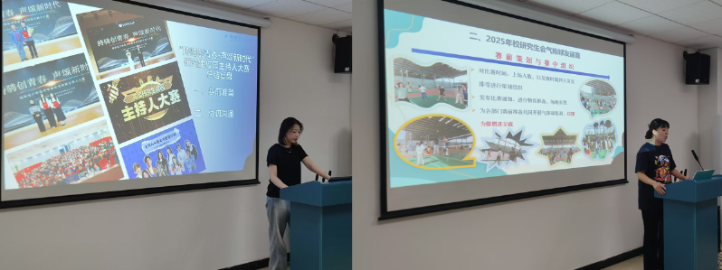 此次述职汇报,既是对过往工作的梳理复盘,也搭建了“师生交流、部门互鉴”的平台。申鑫老师肯定各部门的成果,并对学生干部未来工作提出三点建议:首先要强化身份认同,作为学生干部要以身作则对自己的言行举止有更高要求,以高标准立责;其次要平衡学业和学生干部工作的关系,做好时间规划与调节,学生干部要起到榜样作用,要在科研方面下到功夫;最后他强调,学生干部更要追寻自我价值,在研会平台锻炼成长,同时为集体发展贡献力量。未来,研会将继续以研究生需求为导向,在创新中突破、协作中成长,打造服务同学、助力成长的“温暖港湾”。