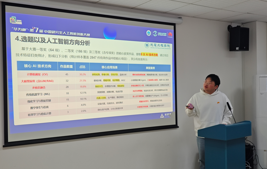 11月22日,由党委研究生工作部/研究生院主办、校研究生会承办的第28期“研在桂电·创新论坛”主题交流会在研工部/研究生院220举办。本次交流会以“研究生人工智能创新大赛经验分享”为主题,特邀我校在第七届中国研究生人工智能创新大赛中斩获国家级奖项的三支优秀团队,从不同领域、多个维度分享参赛经验与实战技巧。