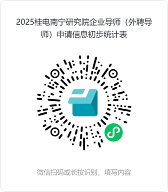 个人申请:请申请人扫描下方二维码填写并提交《2025桂电南宁研究院企业导师(外聘导师)申请信息初步统计表》;