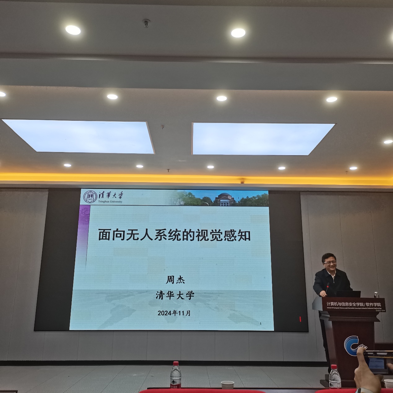 清华大学周杰教授首先为本次讲坛带来了以“面向无人系统的视觉感知”为主题的报告,在报告中先介绍了无人系统应用任务的多样性和环境的复杂性以及无人系统中的视觉感知面临着的很多特殊挑战。之后阐述了对无人系统中视觉感知的理解,讨论了需要重点解决的学术问题,最后还介绍了清华大学在约束式单目运动视觉、轻量化视觉模型、面向无人车的高效视觉感知等方面的研究成果。