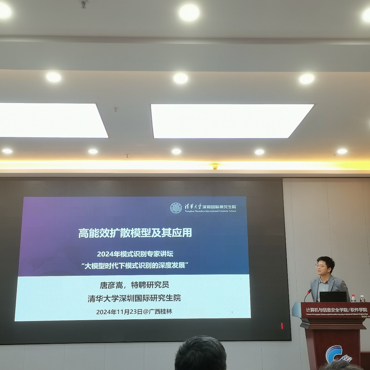 最后,来自清华大学深圳国际研究生院的唐彦嵩特聘研究员带来了主题为“高能效扩散模型及其应用”的报告。扩散模型通过迭代式的去噪过程及其对文本等多模态信息的交互理解能力,实现了在生成质量和用户可控性方面的新突破。然而,扩散模型庞大的模型体量及长时间的迭代效率带来了高昂的推理成本,限制了其在低能耗设备上的应用场景。围绕上述问题,唐彦嵩特聘研究员重点介绍了团队近期针对扩散模型结构设计的模型压缩及高效推理方案,以及其在图象增强、人体姿态估计以及动作生成等方面的应用。