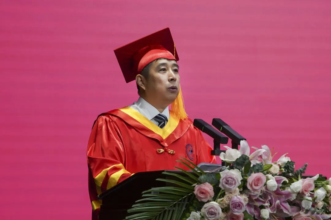 同学们,世界百年未有之大变局、中国式现代化新征程,既给你们带来新的挑战和机遇,更带来了新的使命和责任。展望新征程,整装待出发。今天,我想和大家共勉四个字“奋进以成”,希望同学们把奋进作为人生的主题曲,做奋进之人,走奋进之路,行奋进之事,以奋进的乐章奏出人生最美好的时刻。
