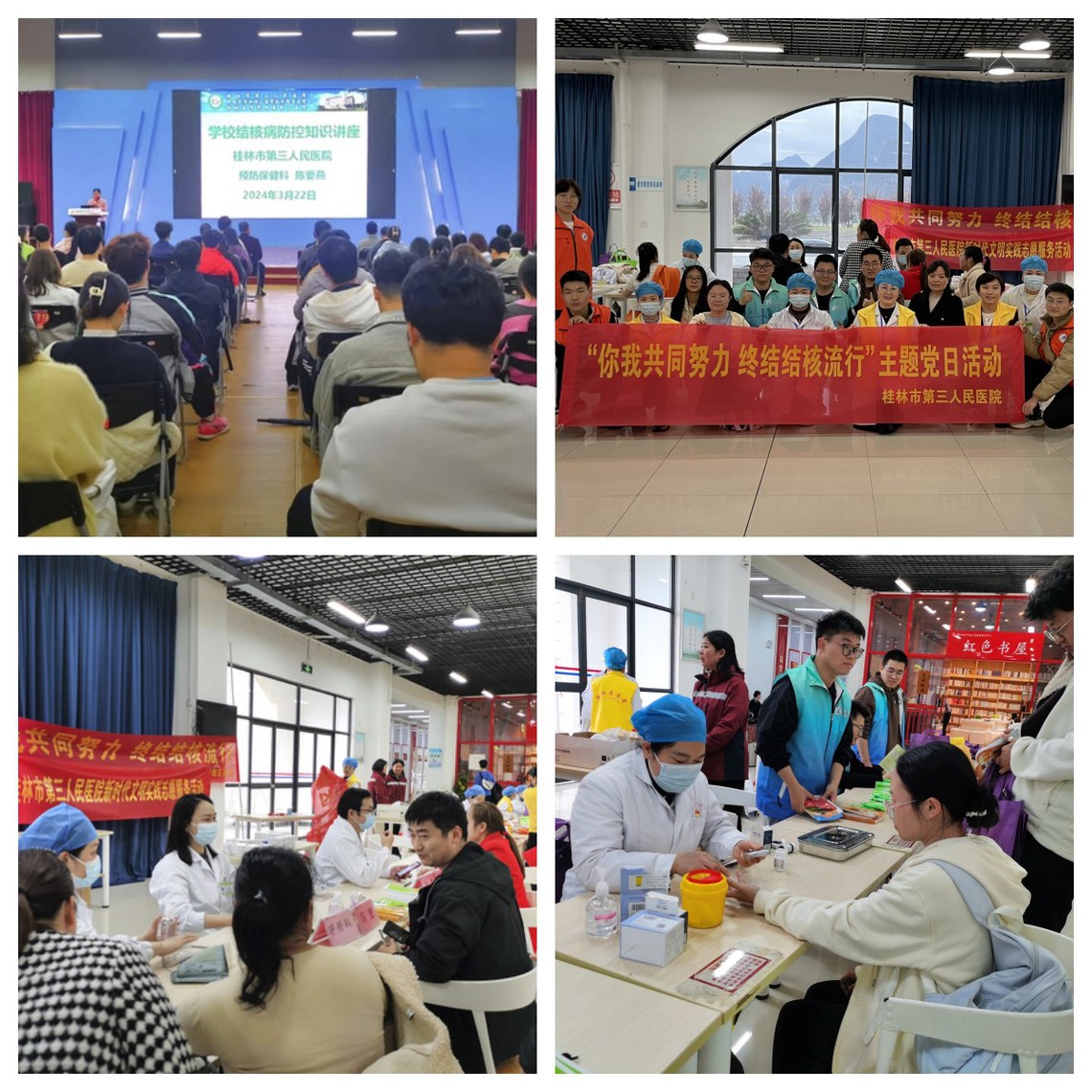 322日,我校积极联合桂林市第三人民医院、桂林市疾病预防控制中心开展世界防治结核病日宣传教育活动。校医院相关负责人、学生青年志愿者协会成员、信息与通信学院志愿者参加活动。
