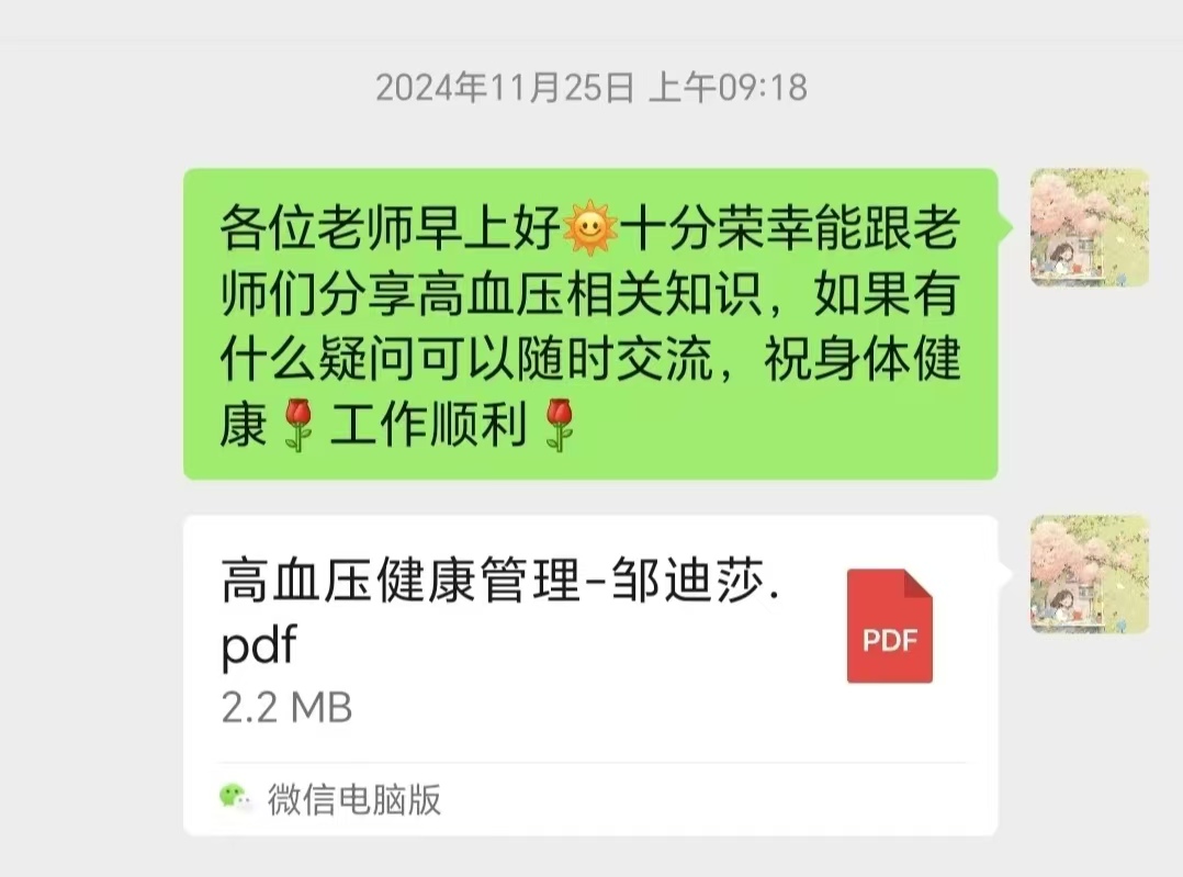 校医院作为桂林市人民医院医联体成员医院,依托市人民医院技术力量及管理经验,组建了高血压健康管理团队。团队为学校师生员工免费开展高血压全周期健康管理,努力为师生员工的健康保驾护航。