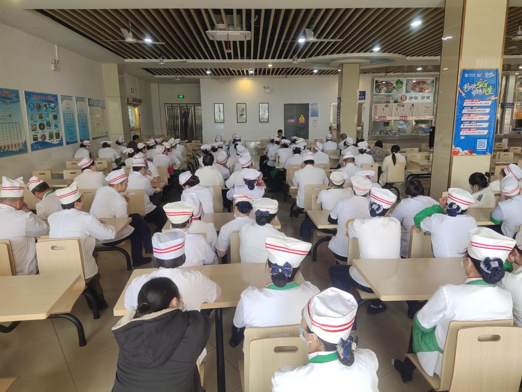 为了增强食堂员工的食品卫生安全意识,提升员工个人卫生素养,2月24日-28日,饮食科分四批次组织食堂员工在金鸡岭校区生乐餐厅、花江校区怡园餐厅开展了“食堂从业人员个人卫生知识”培训。饮食科督查部、食堂员工190余人参加了培训。