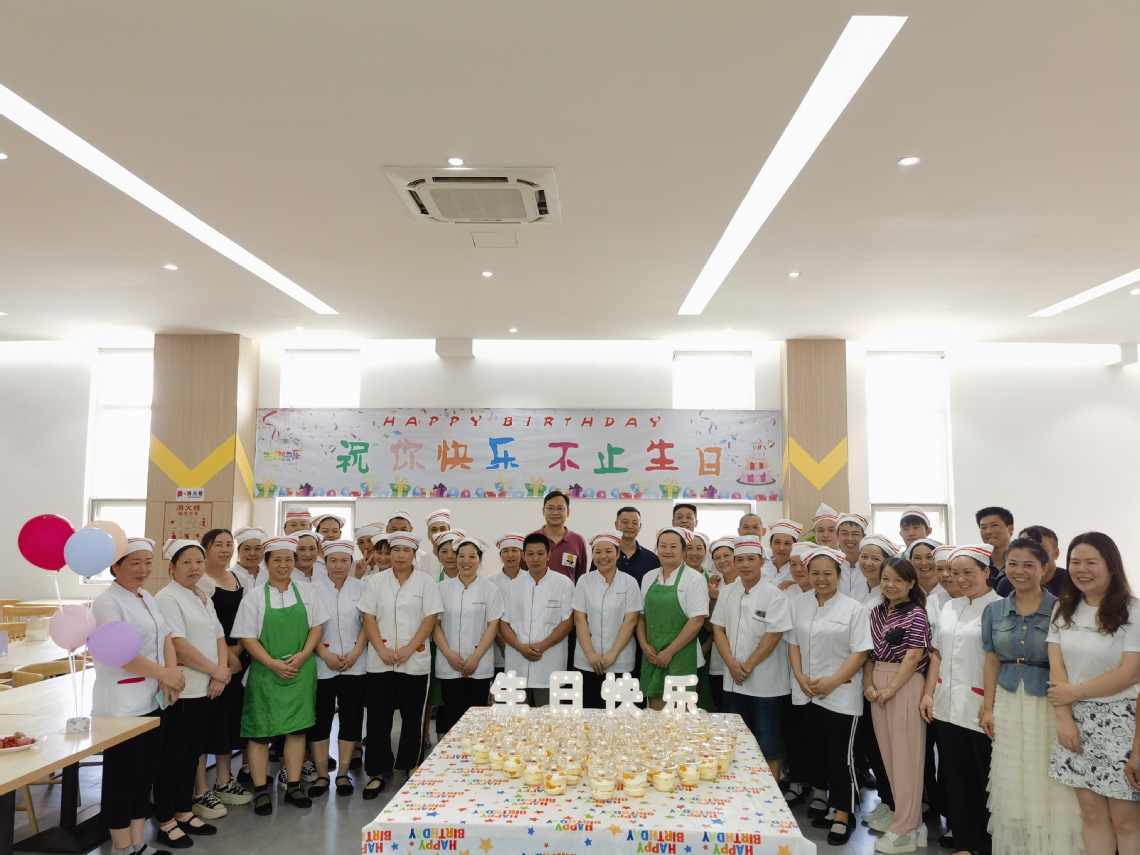 7月5日下午,后勤处饮食科在花江校区怡园教工餐厅为46位5-7月生日的员工精心举办了“集体生日会”。后勤处处长黎昕、副处长徐波出席集体生日会,饮食科管理人员、食堂主任参加集体生日会。会议由副处长徐波主持。