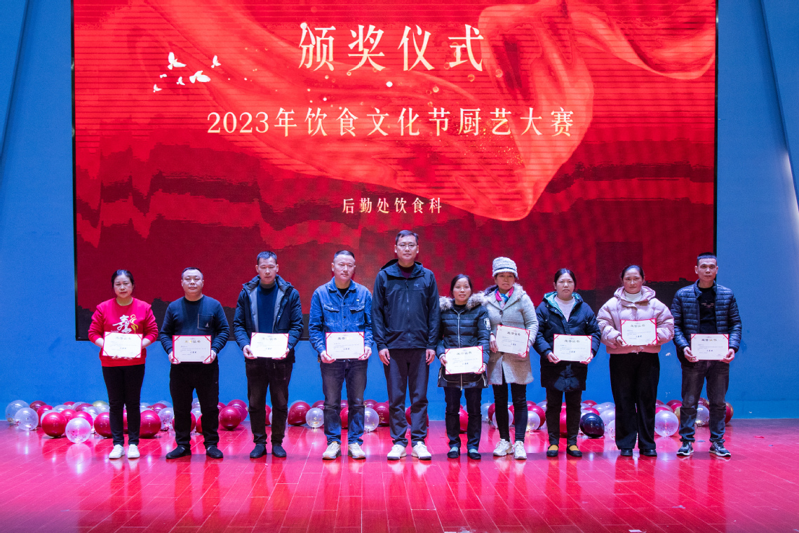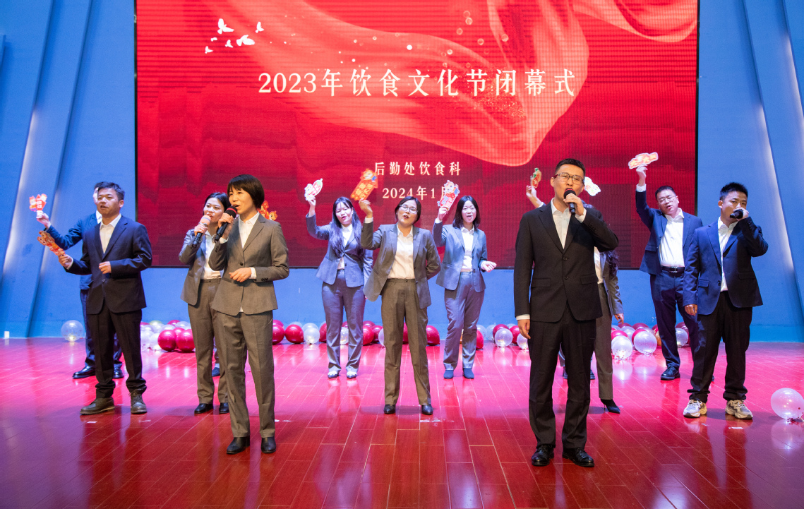 在饮食文化节闭幕式上,饮食科职工分别表演了舞蹈《欢乐中国年》,相声《声大声小》,合唱《我的未来不是梦》;徐波总结了2023年饮食文化节有关工作情况,为饮食文化节厨艺大赛中表现优秀的职工进行了颁奖,他希望职工再接再厉,守正创新,持续做好餐饮服务工作。