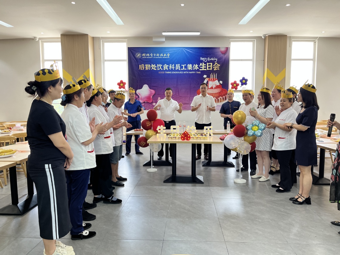 为提升饮食科员工的凝聚力和幸福感,5月28日,饮食科在花江校区怡园教工餐厅为30名4-5月生日的员工举办了集体生日会。后勤处处长黎昕、副处长徐波出席集体生日会。